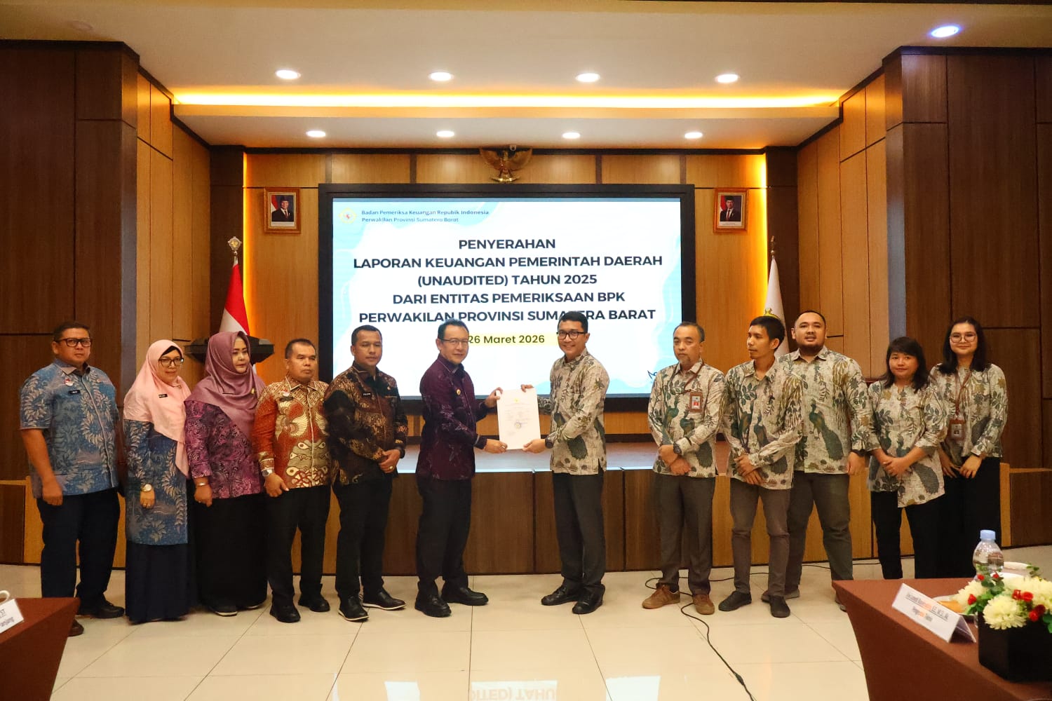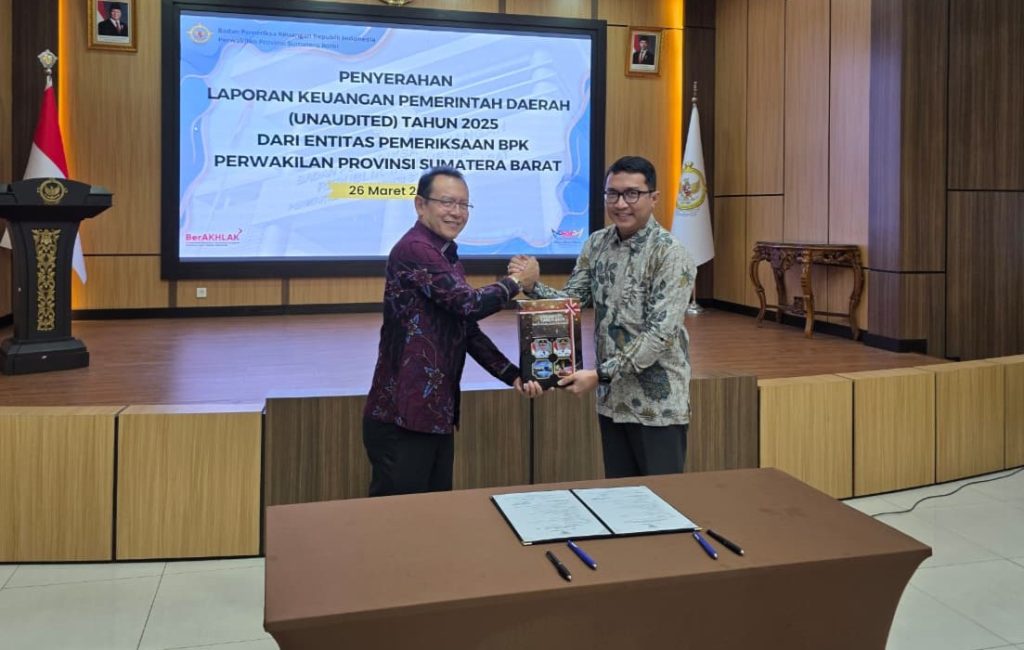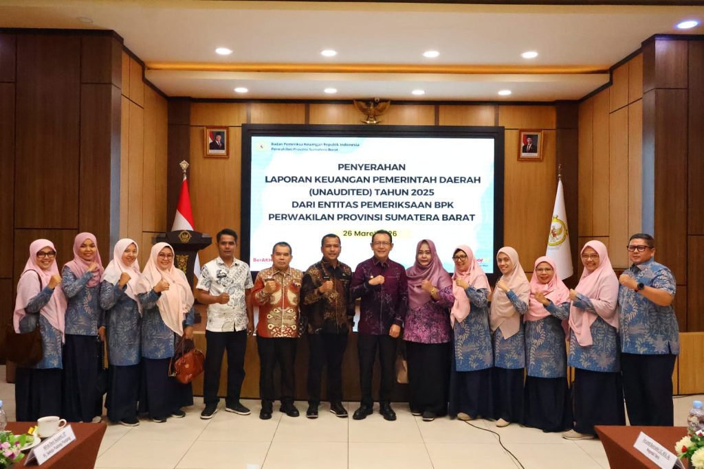 Payakumbuh — Wali Kota Payakumbuh, Zulmaeta menyerahkan Laporan Keuangan Pemerintah Daerah (LKPD) unaudited Tahun Anggaran 2025 kepada Badan Pemeriksa Keuangan (BPK) Perwakilan Provinsi Sumatera Barat di Padang, Kamis (26/03/2026).