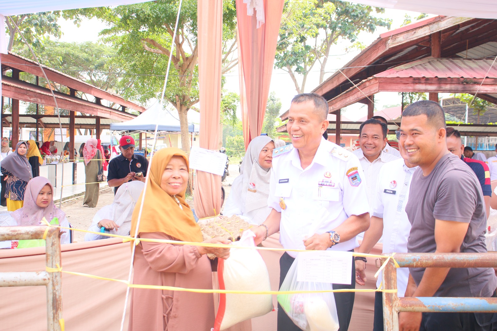 Wakil Wali Kota Payakumbuh, Elzadaswarman, menyerahkan langsung paket sembako berisi beras, telur, dan kebutuhan pokok lainnya kepada warga saat gelaran Pasar Murah di Pasar Rakyat Padang Kaduduak, Rabu (13/8/2025).