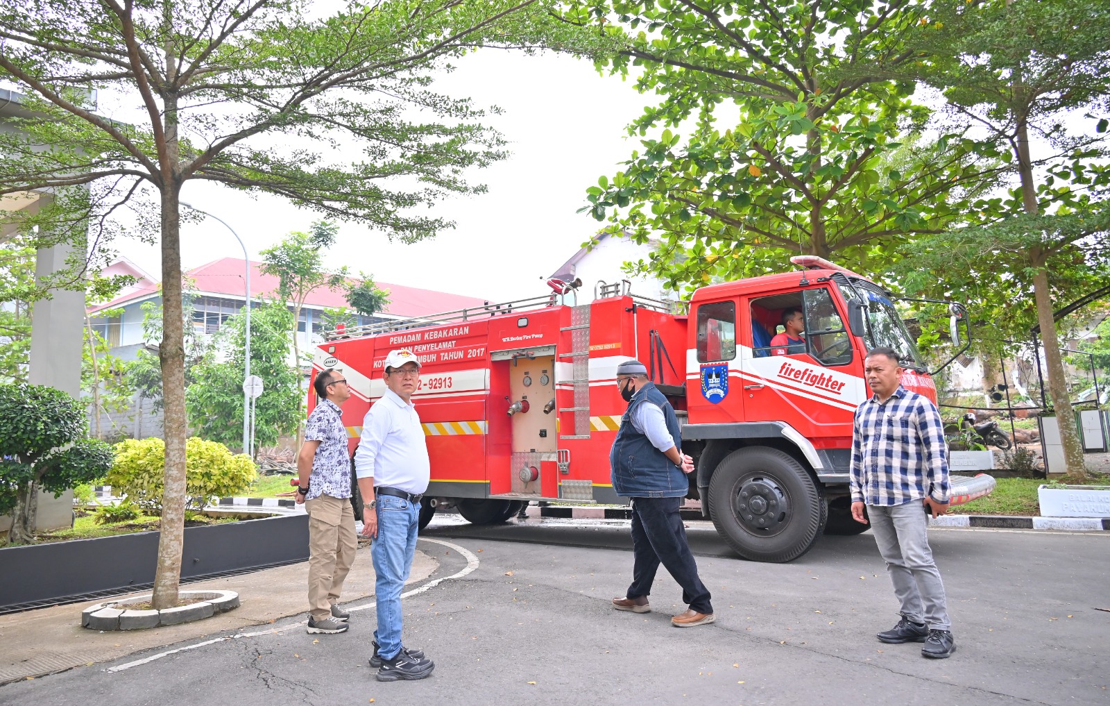 Zulmaeta turun langsung memantau kesiapan lapangan bersama jajaran. Ia melihat petugas kebersihan mulai menata taman dan merapikan lingkungan sekitar.